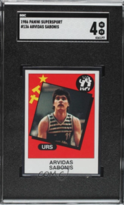 Judame toliau, prie Lietuvos legendos – Arvydo Sabonio. A.Sabonio pirmoji NBA kolekcinė kortelė yra iš 1995–96 sezono — tiksliau, 1995–96 Topps Stadium Club serijos leidimas su jo atvaizdu Portlando „Trail Blazers“ aprangoje.